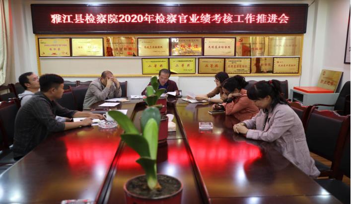 会议强调,要按照《规定》《通知》精神,结合雅江检察工作实际,进一步加强组织领导,将检察官业绩考评作为当前一项重点工作来做,要理清思路,把握标准和时间节点,加强与上级院工作沟通和联系,准确把握省、州院考评指标,全面做好考评工作。院政治部、案管办要切实履行组织实施工作职责,进一步加强工作对接,认真研究本院考评内容,及时制定考评工作方案,确保考评工作有效推进;各业务部门负责人要结合最高检、省州院检察官业绩考核指标和评分规则进行深入学习和研讨,加强与上级院业务部门沟通联系,结合雅江检察实际,提出具体修改意见,确保我院检察官业绩考评细则科学合理、务实可行、运转高效。